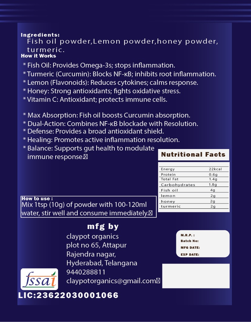 Fish Oil: Provides Omega-3 Resolvins to actively stop the inflammatory process.