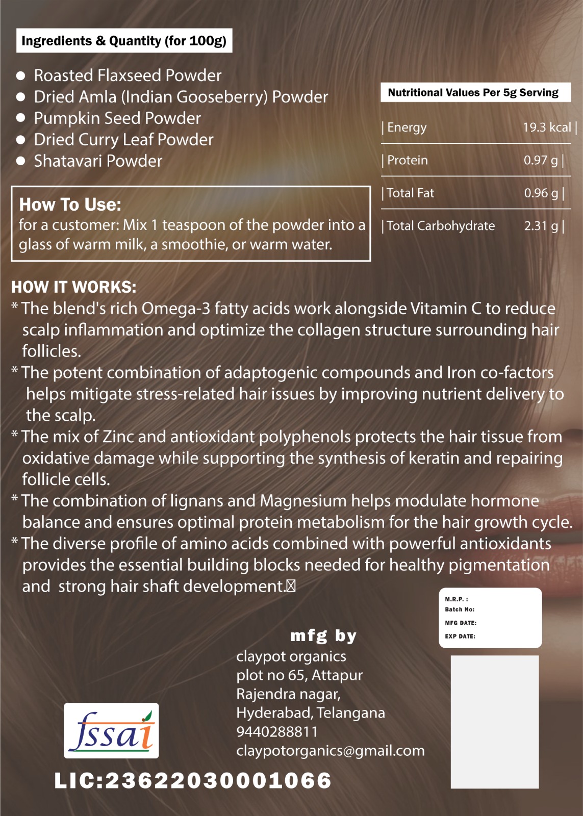 - The potent combination of adaptogenic compounds and Iron co-factors helps mitigate stress-related hair issues by improving nutrient delivery to the scalp.