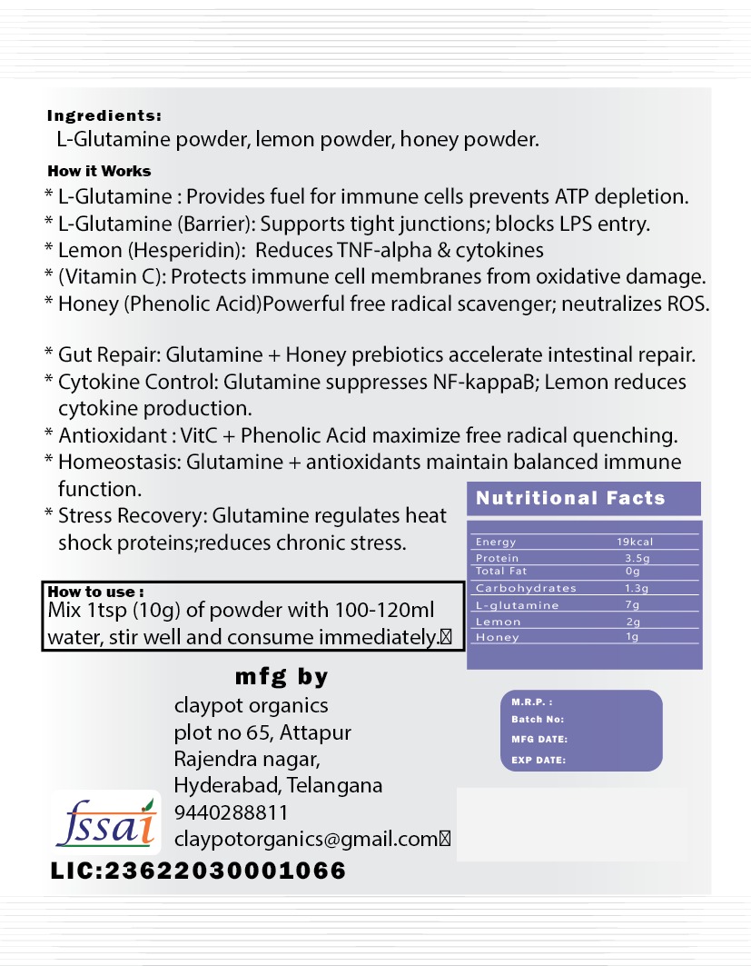 Immune Homeostasis: Provides both the amino acid (Glutamine) and the antioxidants necessary to maintain a balanced immune cell function without inducing an overactive response.