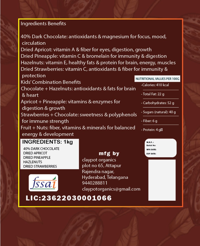 - Fruit blend with nuts provides fiber, vitamins, and minerals for balanced energy and development.